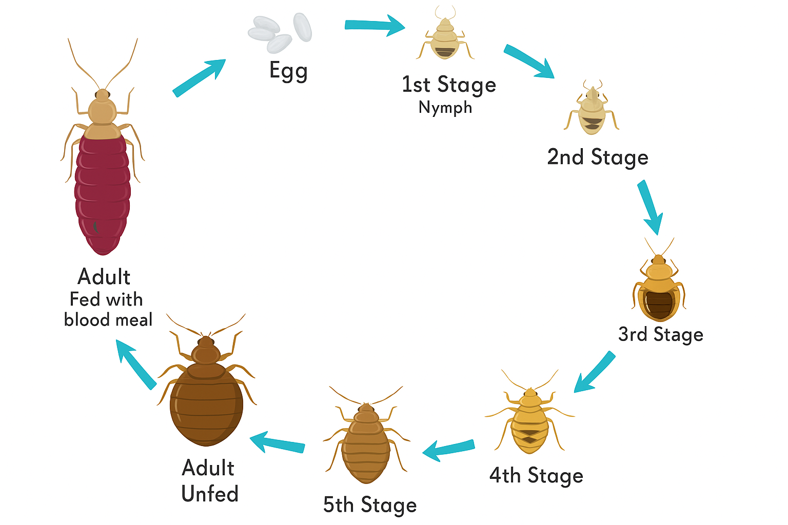 Despite their small size, they live astonishingly dramatic lives. Each bed bug nymph goes through five growth stages, or “instars,” shedding its skin after every blood meal. Imagine this: a tiny vampire that molts its armor after every feast! In warm rooms, bed bugs complete this cycle in just a few weeks, but when food is scarce or the weather cools, they slip into survival mode—waiting quietly for months, even a year, for the perfect moment to strike again.
